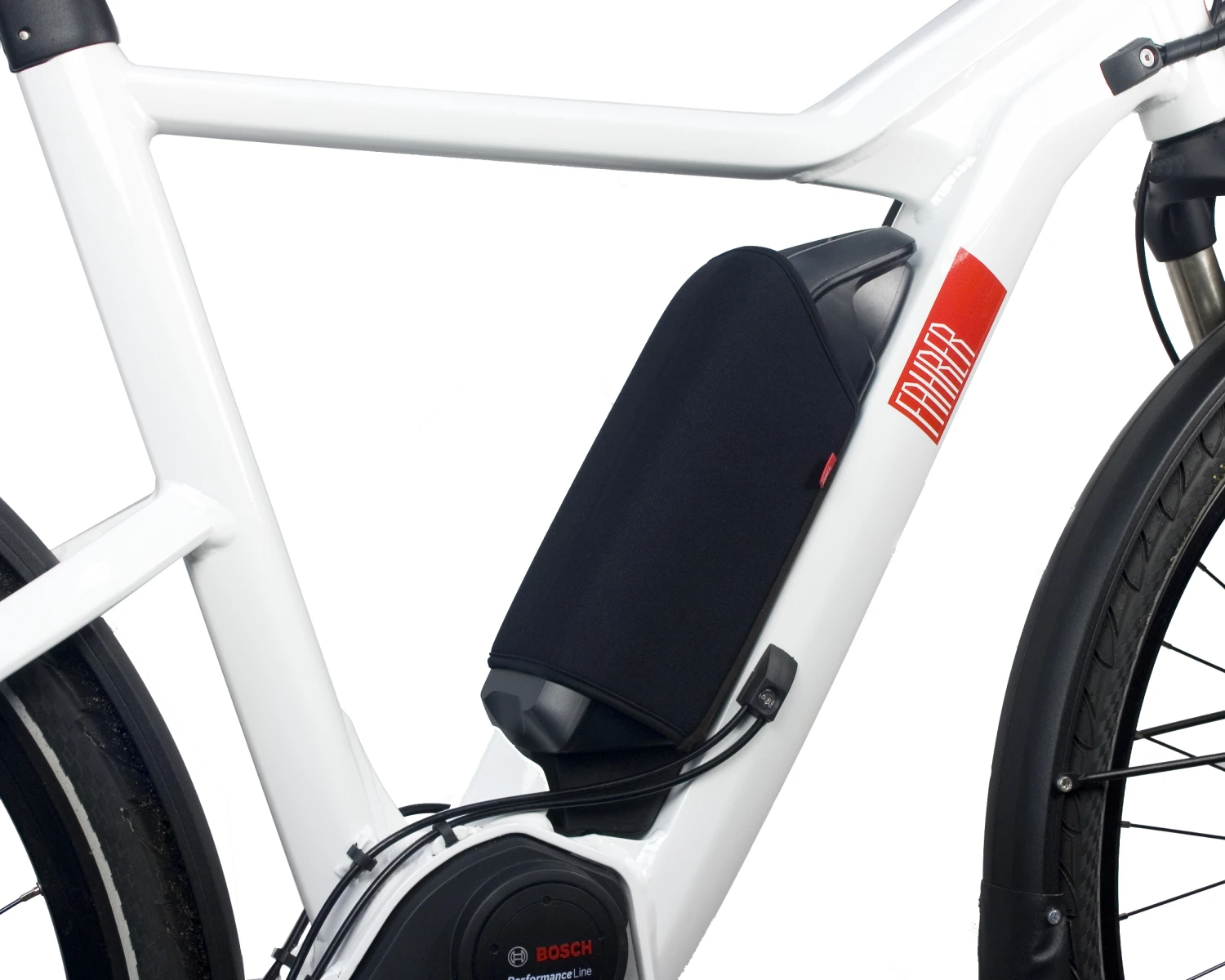 Dieser elastische Universalschutz für Rahmenakkus schützt optimal gegen Kälte und andere äußere Einflüsse.