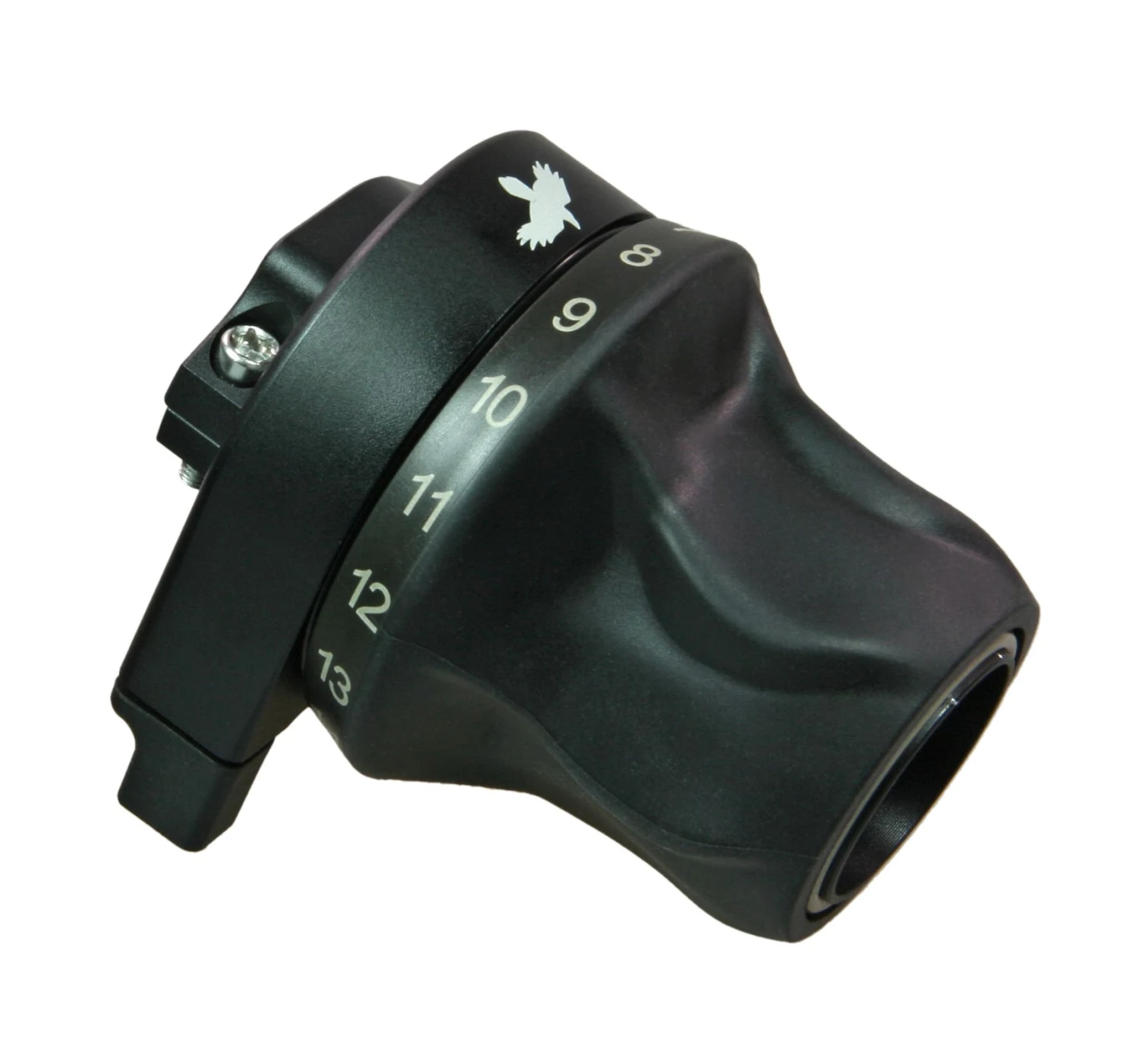 Extrem schnelles und exaktes Schalten – der Rohloff Dreh-Schaltgriff ist die Schnittstelle zur SPEEDHUB 500/14. Die Besonderheit liegt darin, dass die Gangrastung ausschließlich in der Speedhub erfolgt. Und dies hat enorme Vorteile, denn der Schaltpunkt muss nicht am Schaltgriff eingestellt werden und verstellt sich auch nicht. Egal ob rechts oder links am Lenker, egal welche Drehrichtung, Sie haben die Wahl.